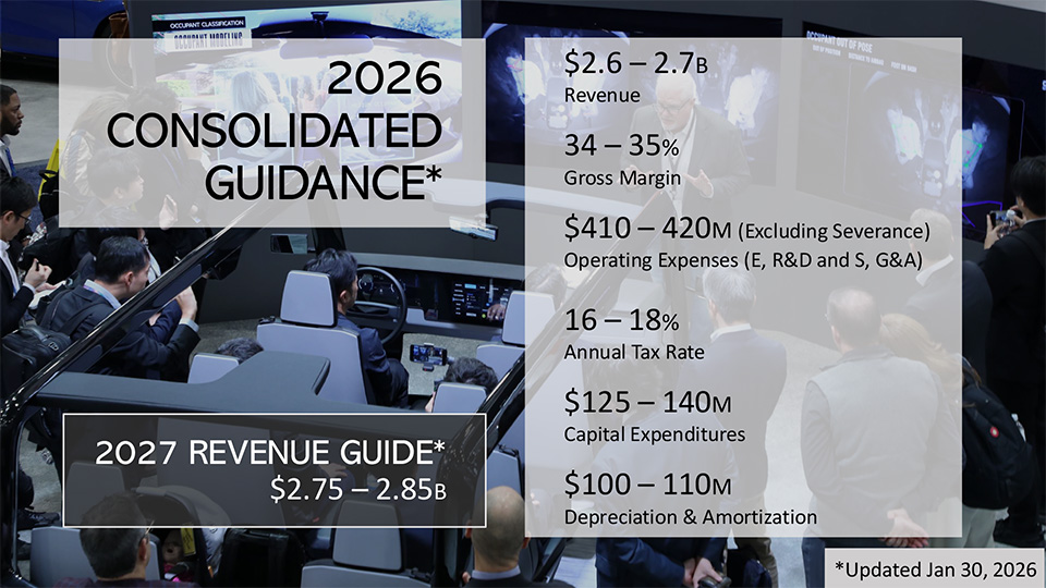 In presenting its guidance – an estimation of expected financial performance in calendar 2026 – the company started out by noting that industrywide light vehicle production forecasts show an expected decline of 1% in automakers’ production for 2026. Considering this forecast, from S&P Global Mobility, along with market conditions in the company’s primary markets, the continued impacts on the China market from tariffs, “and the expected incremental sales contribution from the VOXX acquisition,” the company’s 2026 guidance is as follows…