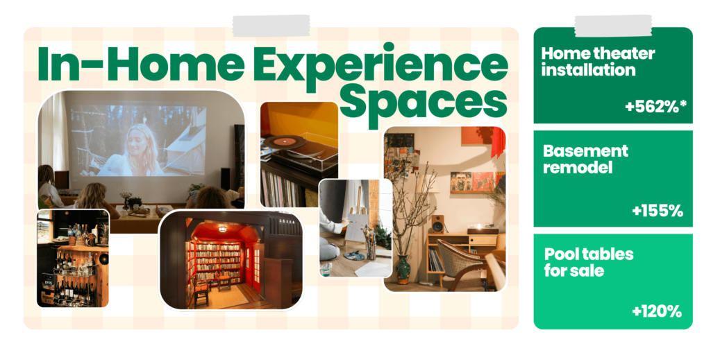 But the trend I was most interested in was “In-home experience spaces.” In this section, Yelp reported that searches for basement remodels increased this year by 155%, as consumers are interested in using these “underutilized spaces” as “hosting havens.”