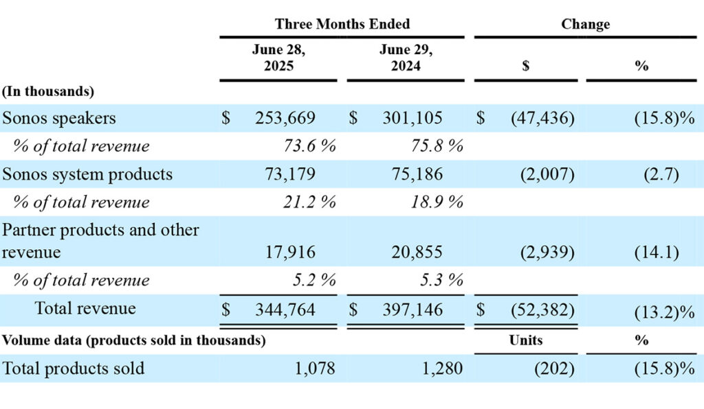 Sonos Flagship Category, Sonos Speakers, Sees Revenues Decline $47.4M
