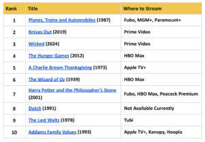 JustWatch Thanksgiving Top 10s -Table November 25, 2025 by Ted Leave a Comment Share this post:Tweet Click to share on Reddit (Opens in new window) Reddit More Click to email a link to a friend (Opens in new window) Email Click to print (Opens in new window) Print Like this:Like Loading...