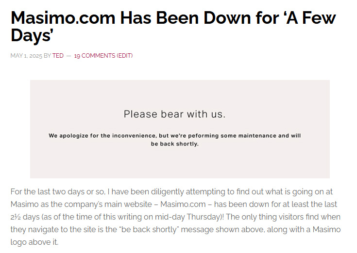 #4 – Masimo.com Has Been Down for ‘A Few Days’