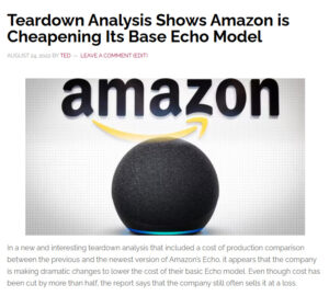 5-teardown_analysis_shows_amazon_cheapening_echo December 31, 2025 by Ted Leave a Comment Share this post:Tweet Click to share on Reddit (Opens in new window) Reddit More Click to email a link to a friend (Opens in new window) Email Click to print (Opens in new window) Print Like this:Like Loading...